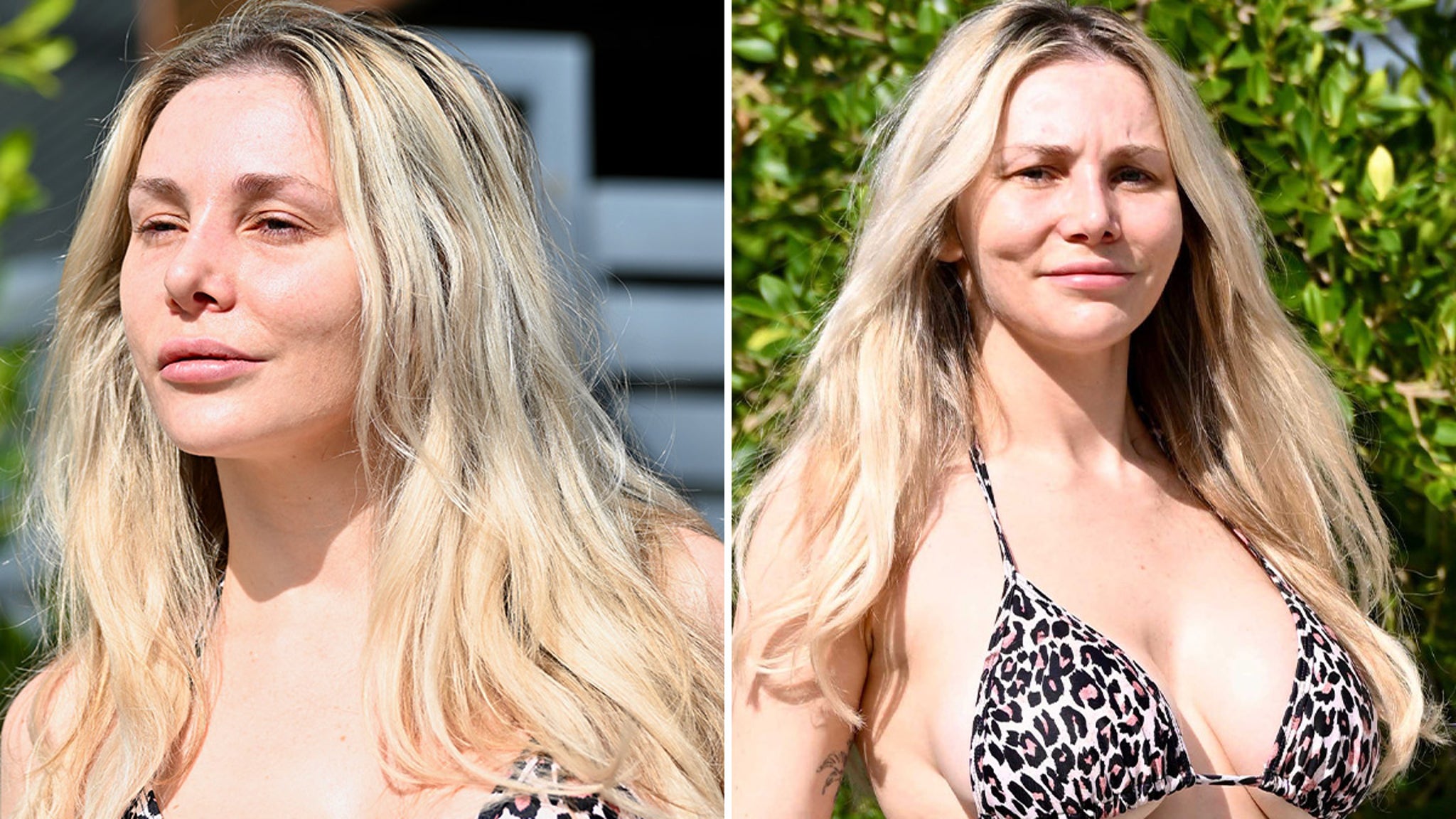 As you can see, Courtney’s trash run in Calabasas, California Tuesday was anything but basic … she flaunted her eye-popping curves in a tiny animal-print bikini top … giving that brand-new nose some serious sniff-worthy competition.