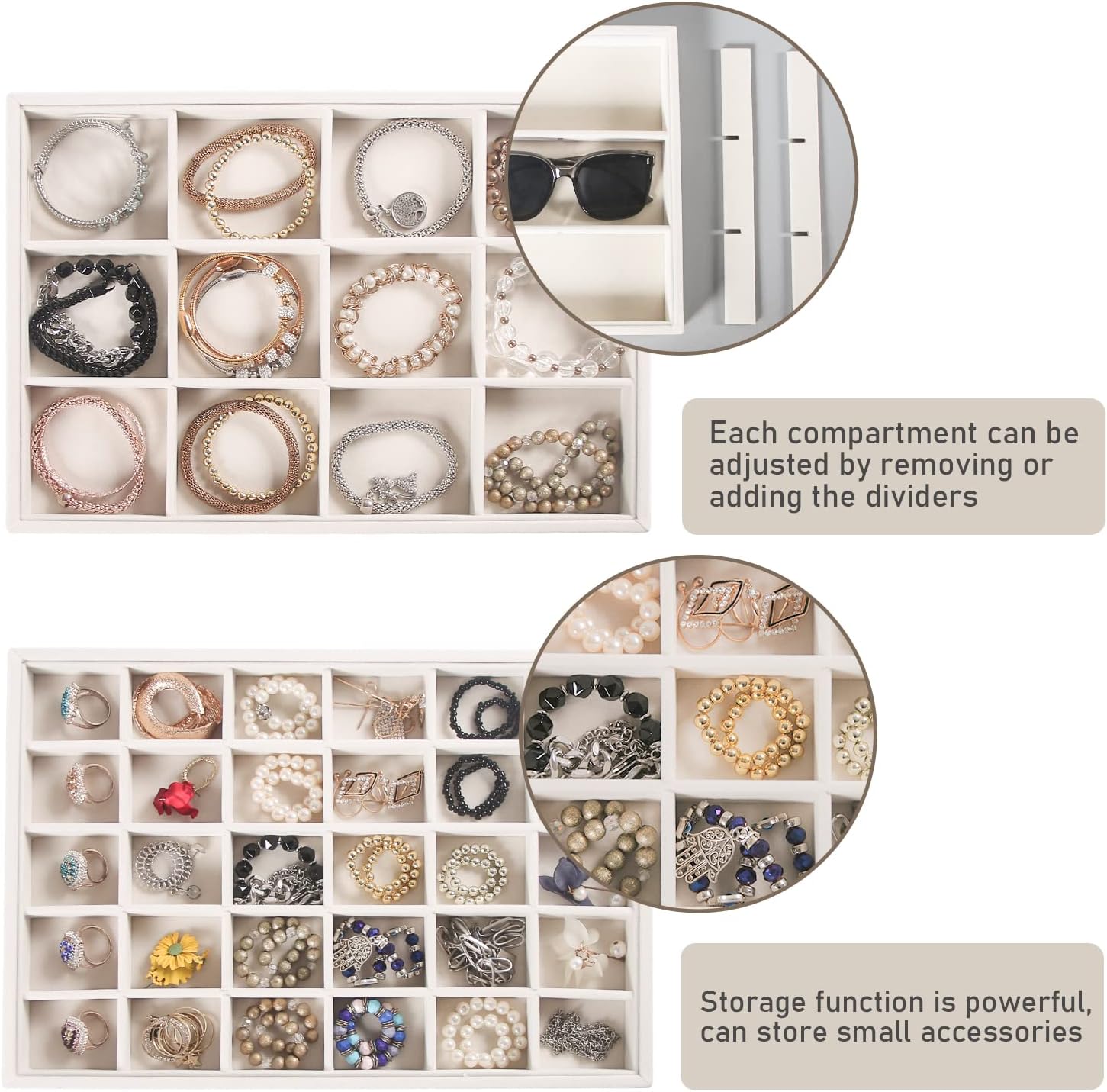 Customers find the jewelry organizer to be of high quality for its price and appreciate its appearance, with one noting the nice glass top and another mentioning the well-designed bottom. The product is spacious, fitting jewelry beautifully in shallow drawers, and customers praise its functionality and organization capabilities, with one highlighting its three stackable containers. Customers like the soft material, stackability, and ease of use, with one noting it’s perfect for guitar picks.